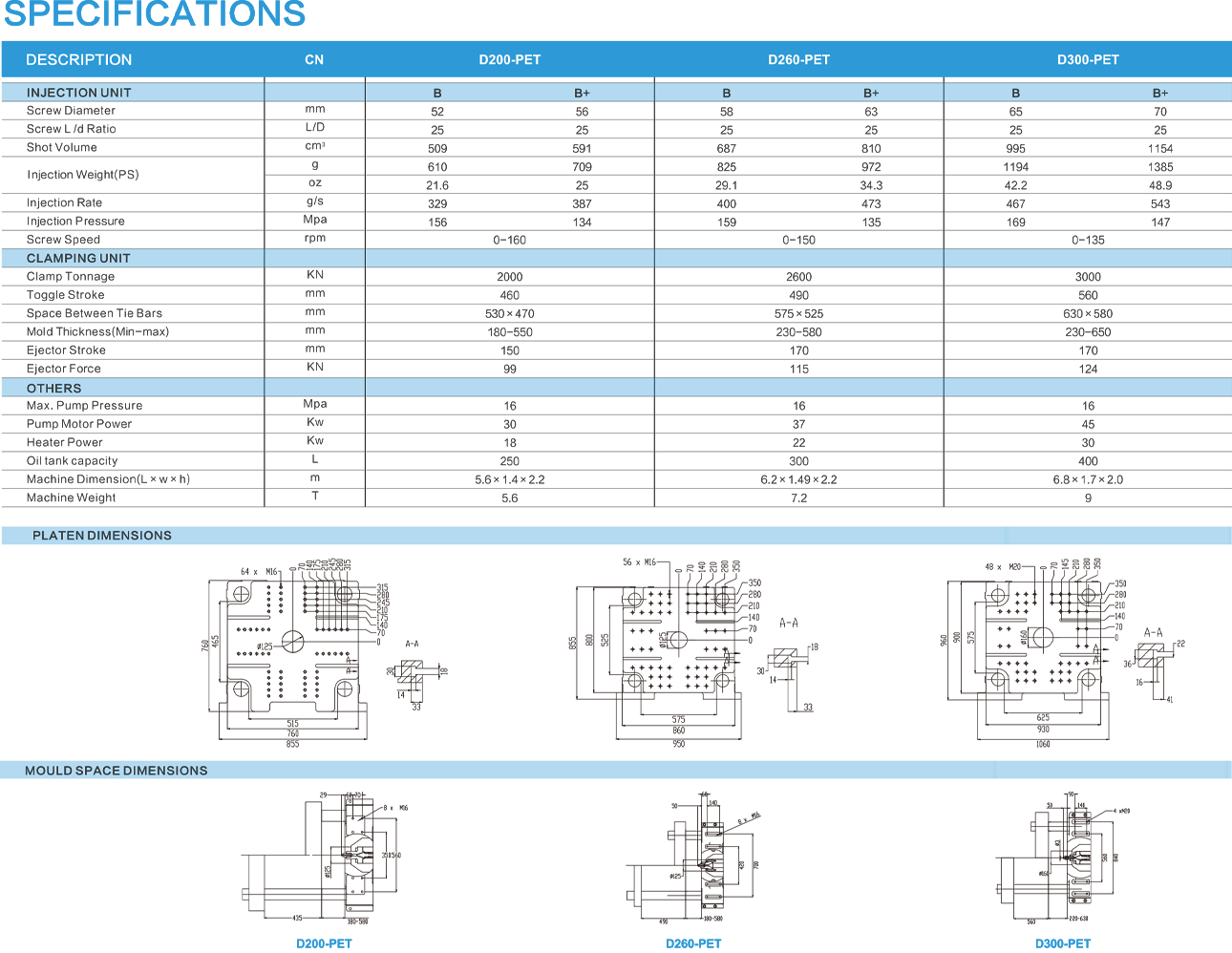 Large multi-cavity preform dies need rigidity. We strengthened the clamp assembly, increased platen stiffness and optimized tie-bar spacing so deep, heavy molds sit true without distortion. Fewer flashes, less downtime for tool shimming — and cleaner parts coming off the line.